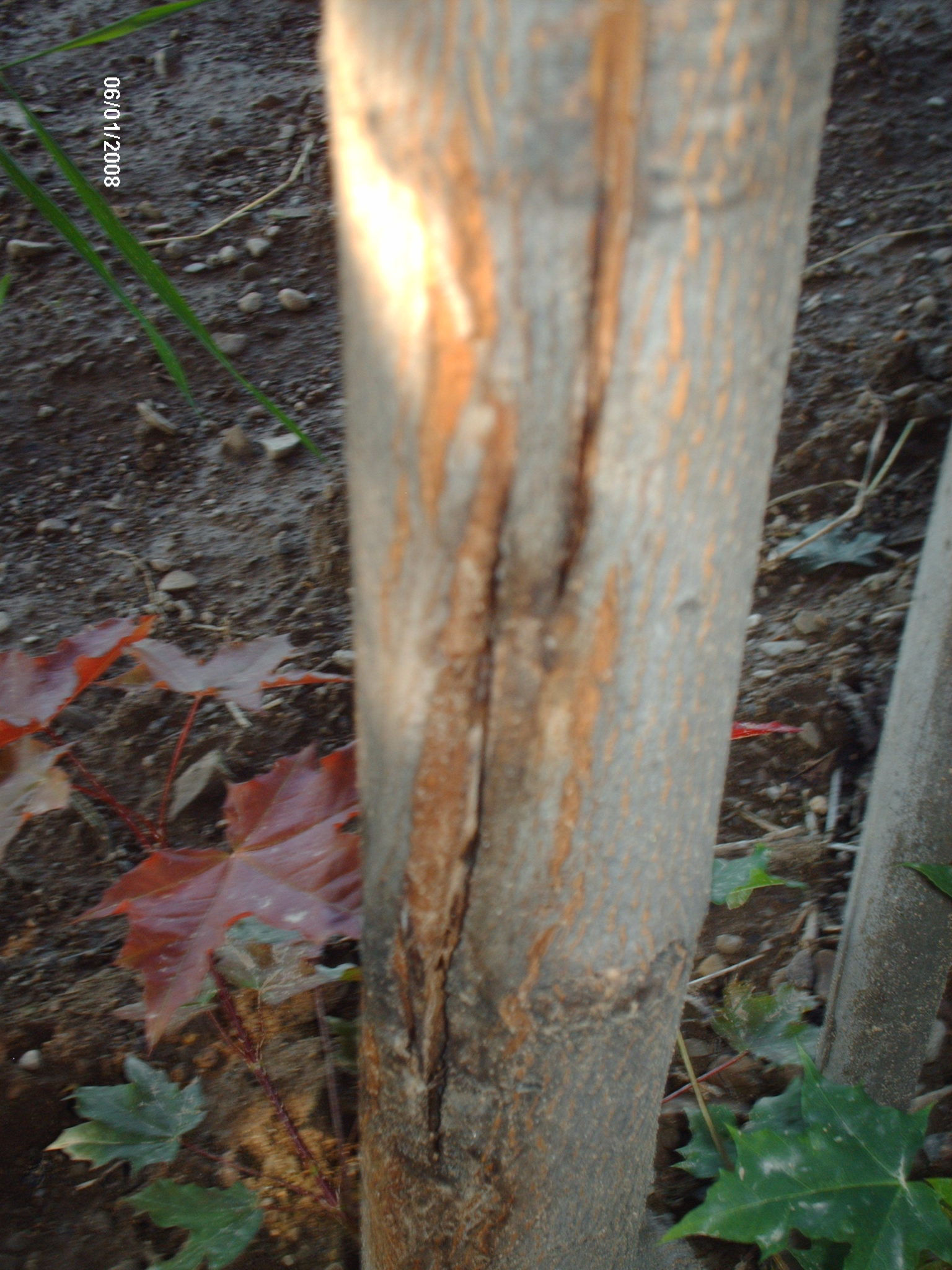 - Figure 3. Bark cracking on thin-barked species, such as maple, is common due to Southwest injury.