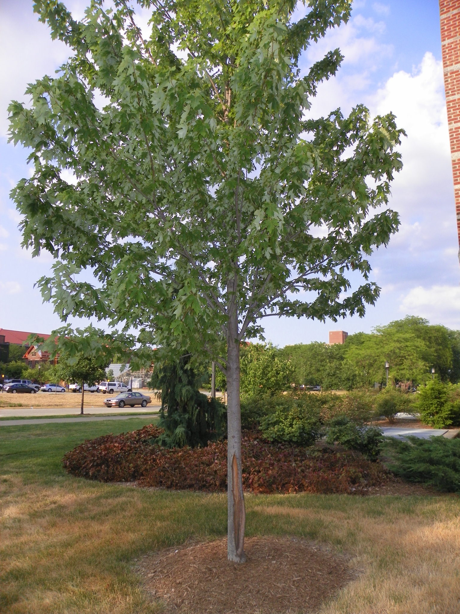 Usually Southwest injury occurs on thin-barked trees, such as Acer spp., Cercis spp., Malus spp., and many others (Fig. 3). A thin-barked tree lacks the amount of cork cells in thicker-barked trees, thus allowing the vascular tissue to be located very close to the bark. Thick bark trees tend to be more resistant to cracking due to a greater lag in the freeze/thaw cycle. Trees that are under stress due to environmental factors, herbicide injury, and/or insect and disease are more susceptible to cracking.